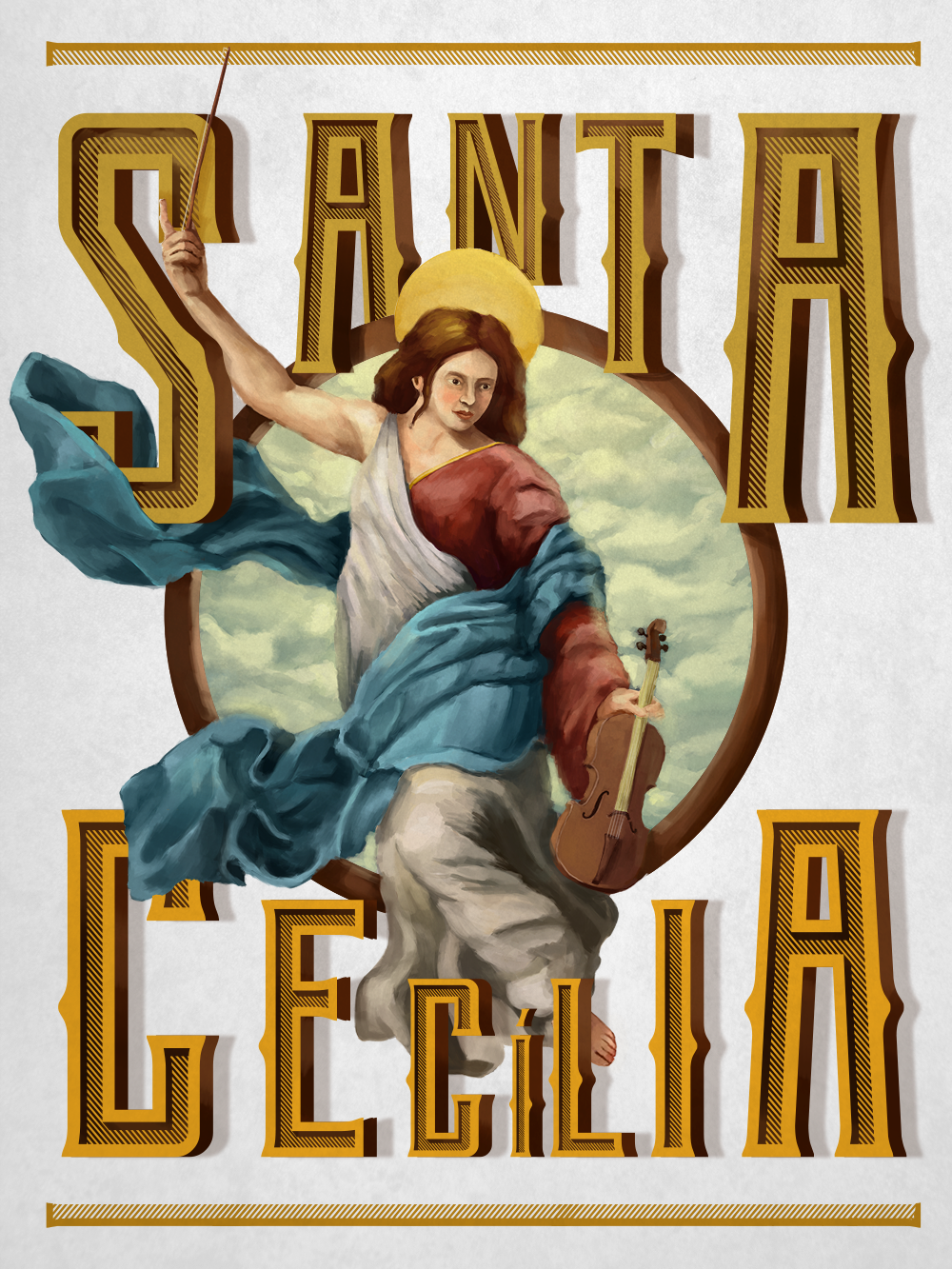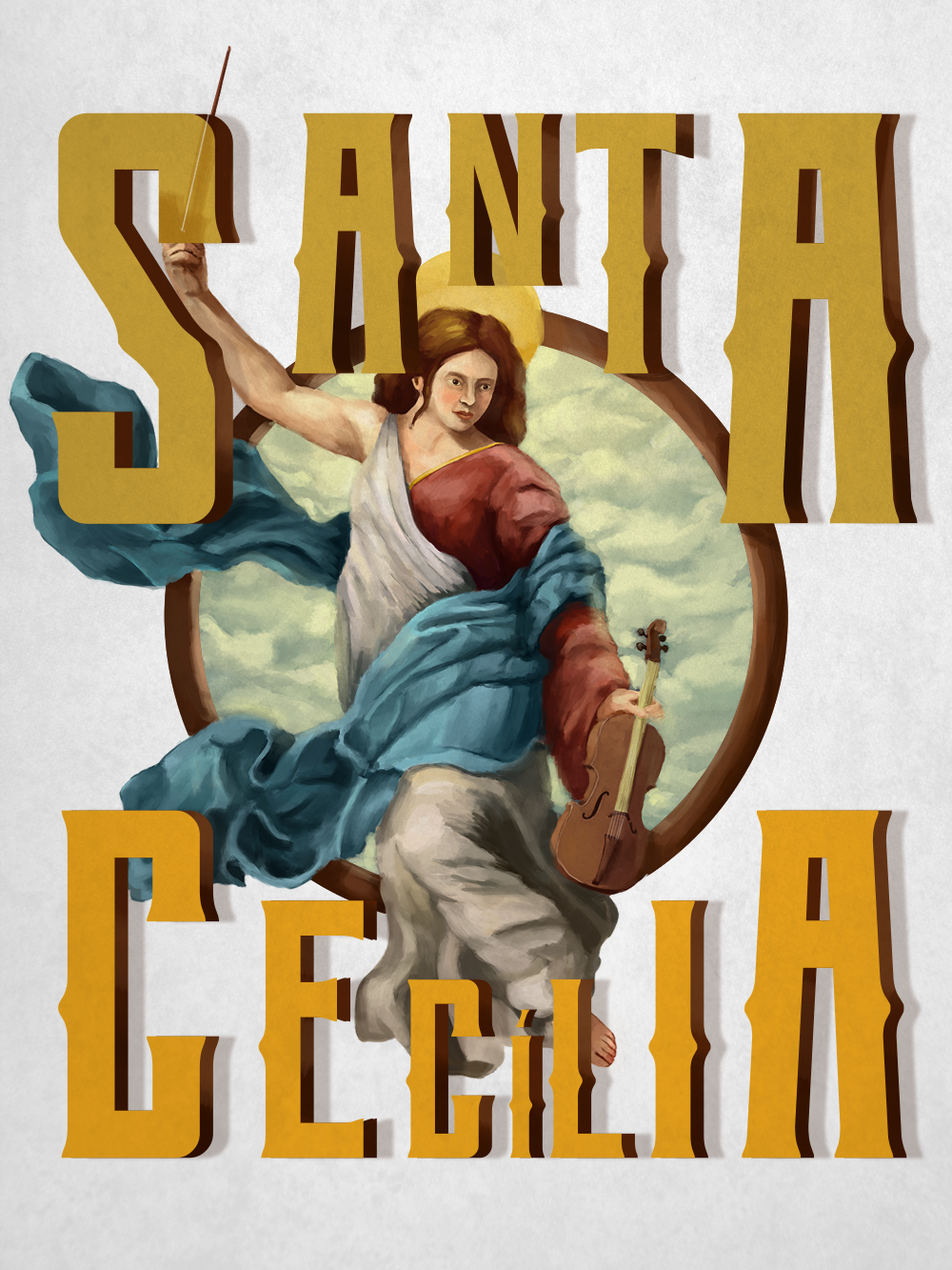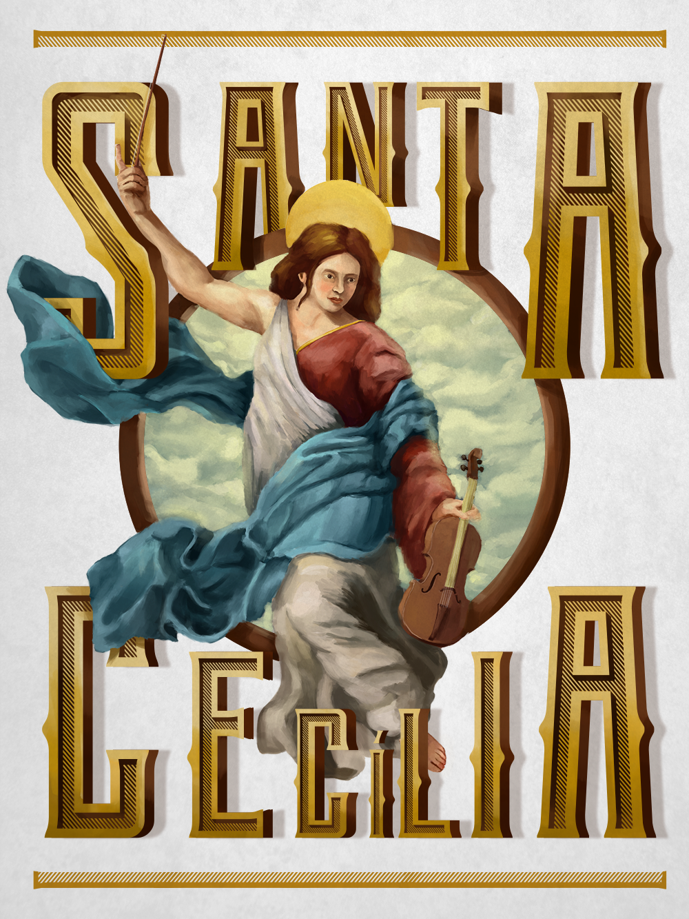 A poster project to pay homage to the district of São Paulo that bears the name of Santa Cecilia, the patron saint of musicians and bards. The composition of the illustration was based on paintings from the Baroque period in digital painting technique.