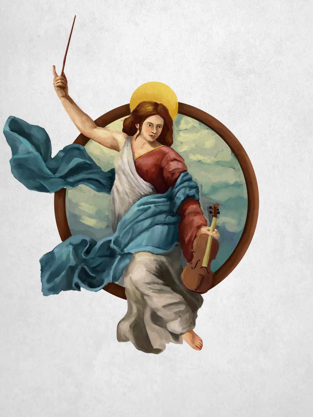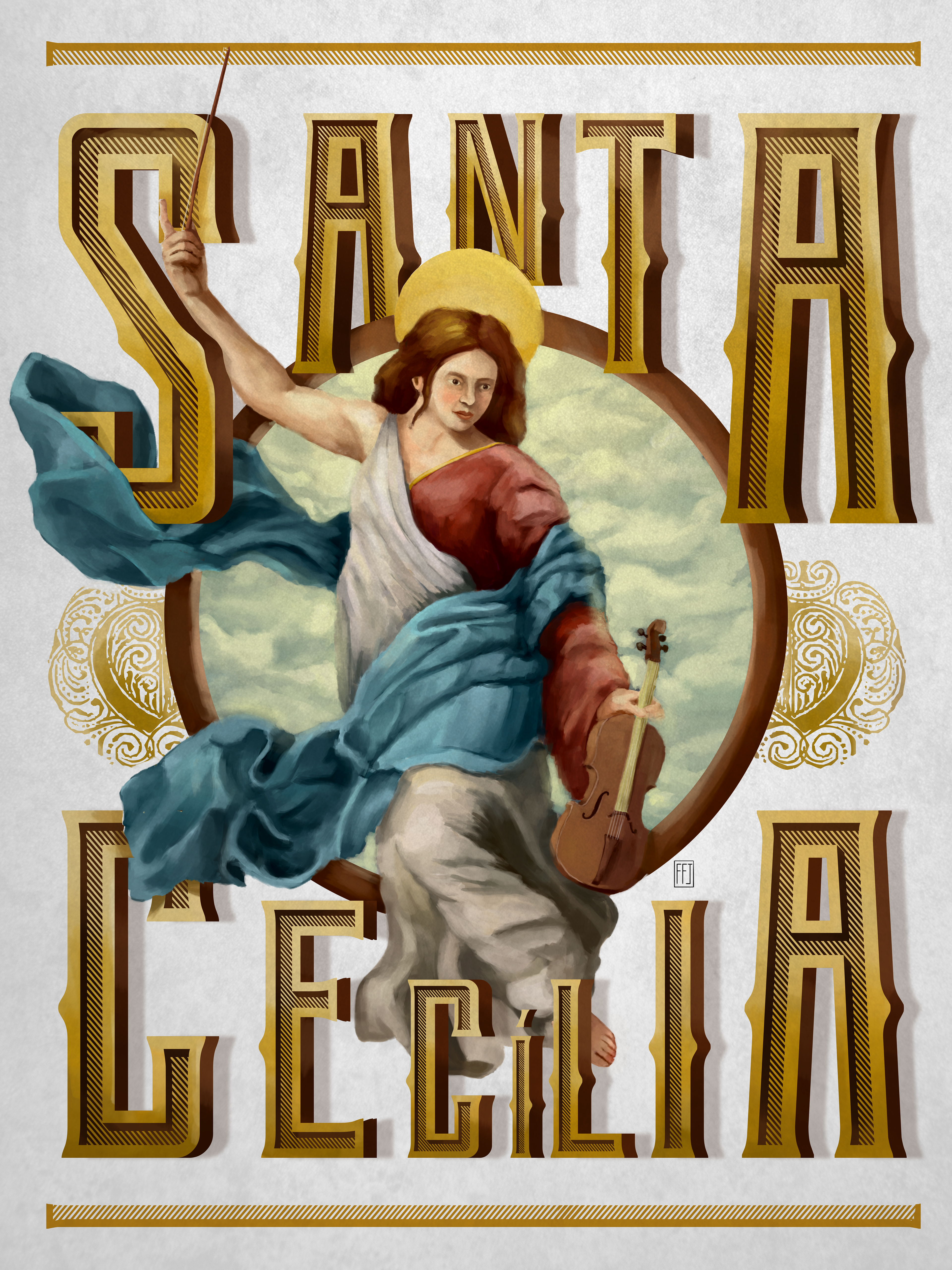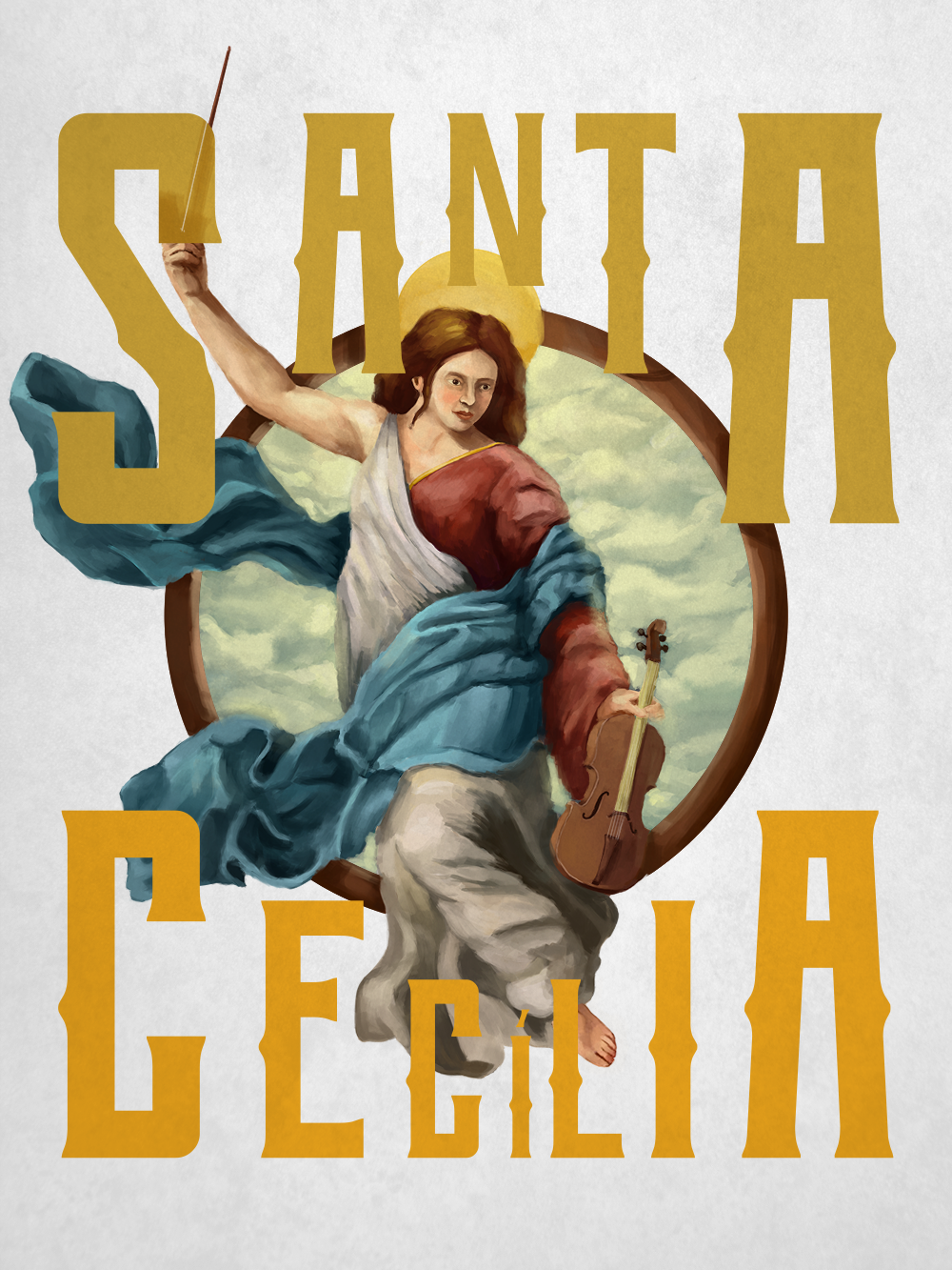 A poster project to pay homage to the district of São Paulo that bears the name of Santa Cecilia, the patron saint of musicians and bards. The composition of the illustration was based on paintings from the Baroque period in digital painting technique.