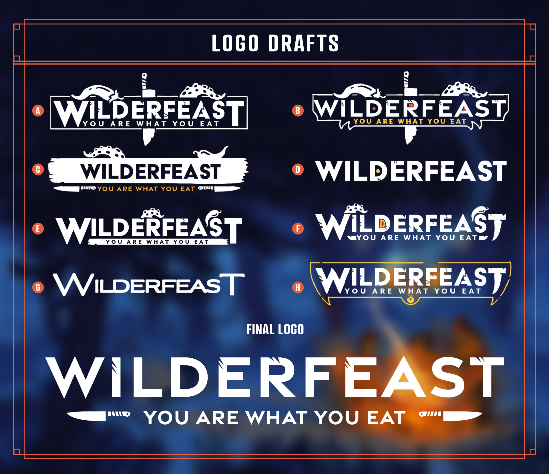 Wilderfeast™ is a tabletop roleplaying game about becoming part of the natural world by making it part of you. In Wilderfeast™, players assume the role of “wilders”: monster hunters / chefs who wield gargantuan kitchen implements and gain powerful mutations from each monster they eat. For the Wilderfeast™ project, I created the logo and co-led the art direction across multiple graphic design touchpoints — shaping the visual identity, layouts, and supporting illustrations.